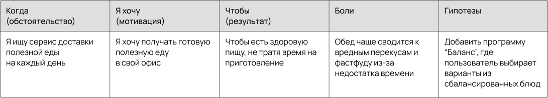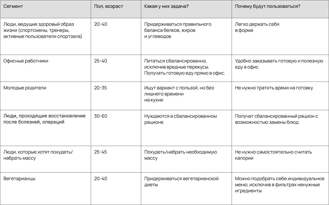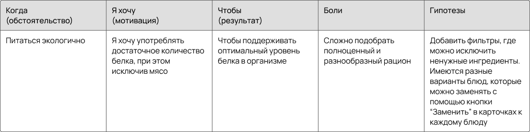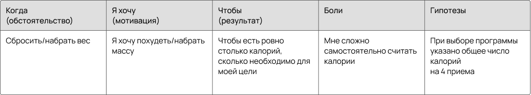 • Выделила ключевые сегменты аудитории и их job stories