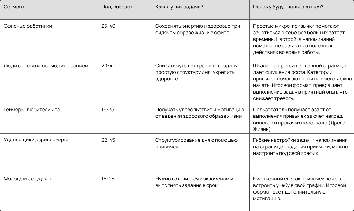 При создании приложения я поняла, насколько важно понимать сегменты аудитории - у кажного сегмента свои боли и приложение может решить его проблему по-разному.